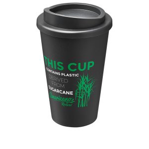 Double-wall insulated tumbler with screw-on lid and 350 ml capacity. Contains 25% plastic derived from sugar cane. This renewable source absorbs carbon dioxide whilst growing and is a by-product of the sugar industry. The use of sugar cane means less oil is used in the manufacture of each tumbler.