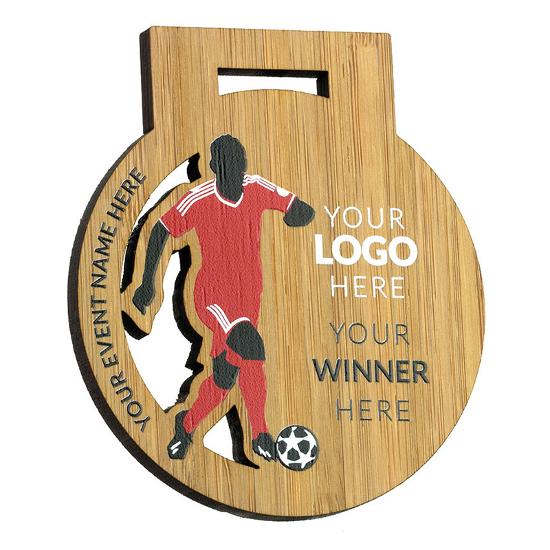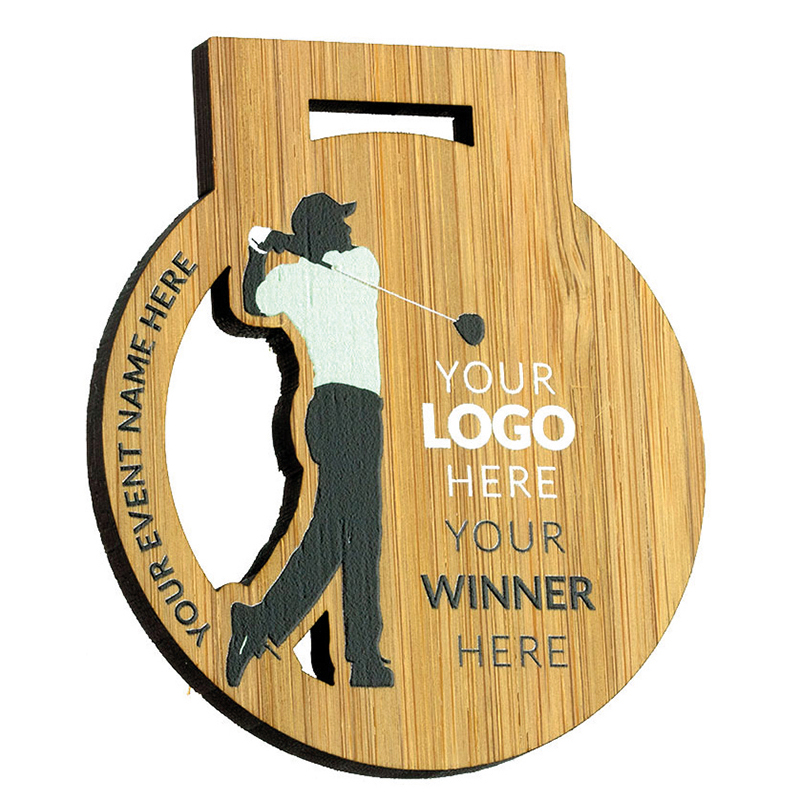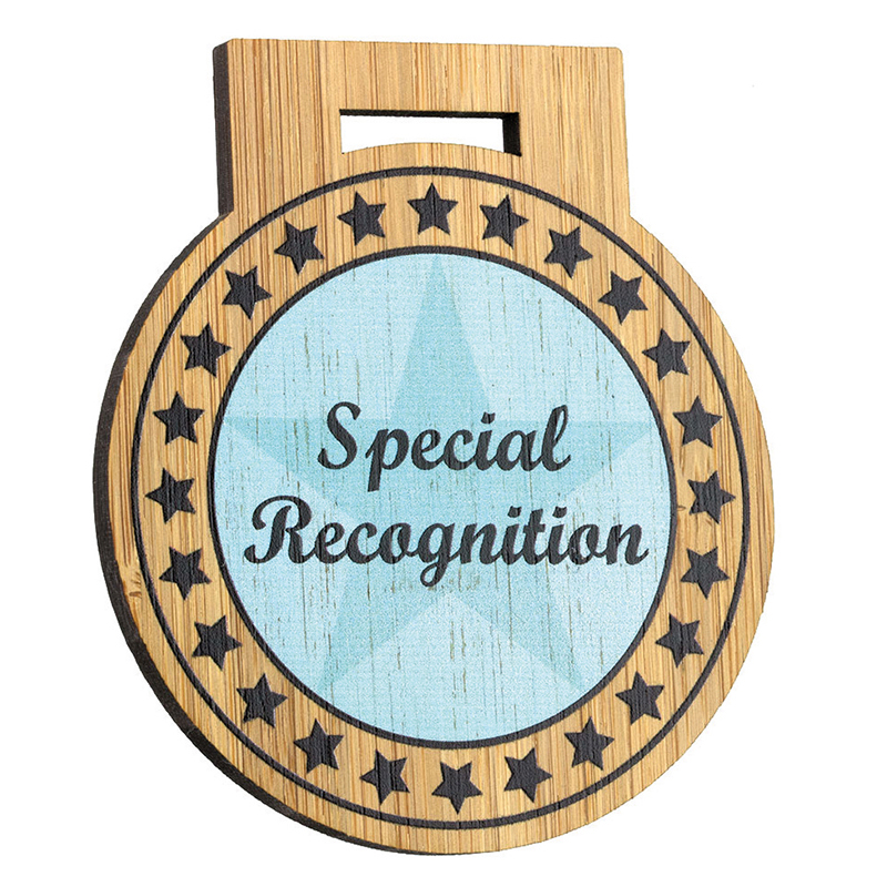 UK manufactured, bespoke 5mm thick bamboo medal. Any shape/size up to 70x70mm, laser engraved or full colour print to one side. No ribbons or lanyards supplied. Hanging method must be known for quoting to ensure right size top slot. Supplied bulk packed in plastic free packaging. Larger sizes available at different costs.