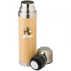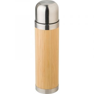Bamboo thermos bottle (400 ml) with stainless steel cap and base. Packaged in gift box.