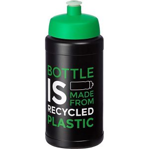 Single-walled sport bottle made from in-house pre-consumer recycled plastic. Features a spill-proof lid with push-pull spout. Volume capacity is 500 ml. Shade of black may vary due to the nature of the recycled material. Made in the UK. Recycled HDPE Plastic. 11 different colours.