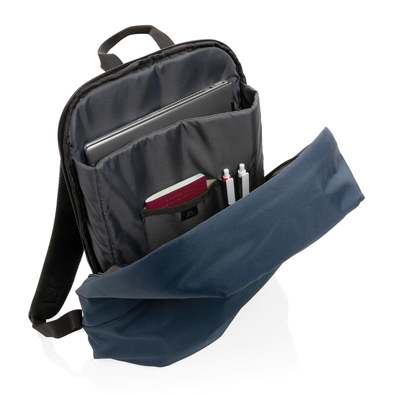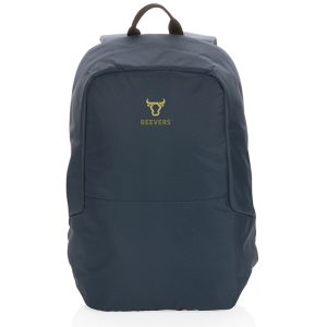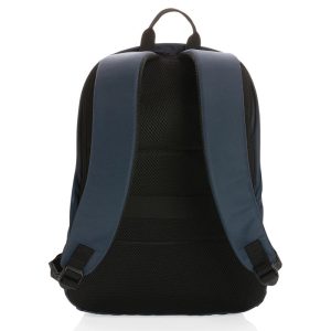 Go to school or off to work carrying all your daily essentials safely protected in this Impact AWARE™ RPET anti-theft backpack! Incorporating a 15.6″ padded laptop pocket. This lightweight and durable backpack features a compact and minimalist construction. Inside there is one RFID sleeve pocket. With luggage strap on the back. The exterior is made of 300D recycled polyester, the lining is 150D recycled polyester. With AWARE™ tracer that validates the genuine use of recycled materials. Each bag saves 11.9 litres of water and has reused 19.9 0.5L PET bottles. 2% of proceeds of each Impact product sold will be donated to Water.org. PVC free.