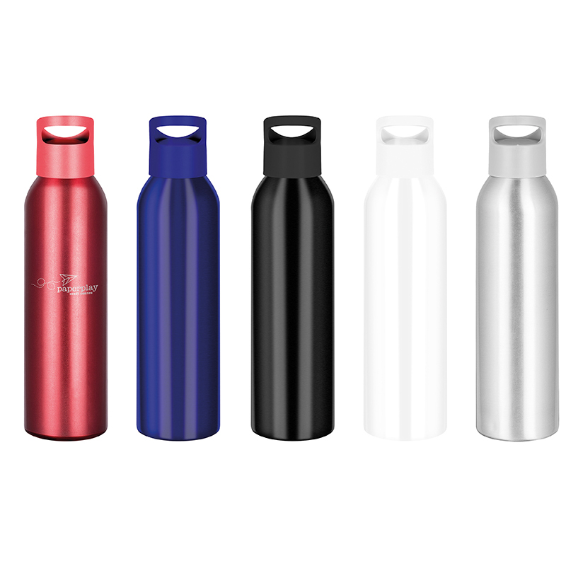 Robust, aluminium 650ml bottle with shiny gloss finish complemented by a matching coloured lid.
