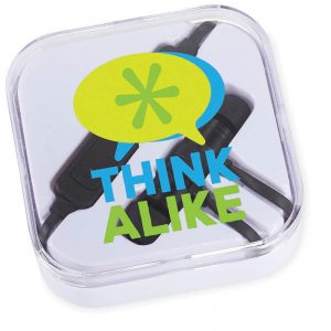 The power of these Bluetooth earbuds is controlled by magnets. When separated the earbuds will power on and will power off when the magnetic earbuds are placed back together. The built in music control and microphone will allow you to control music and answer or reject calls. Playback time is 3 hours at maximum volume. Earbuds take 1 hour to fully charge. Transparent case size: 6 x 5.8cm. ABS Plastic.