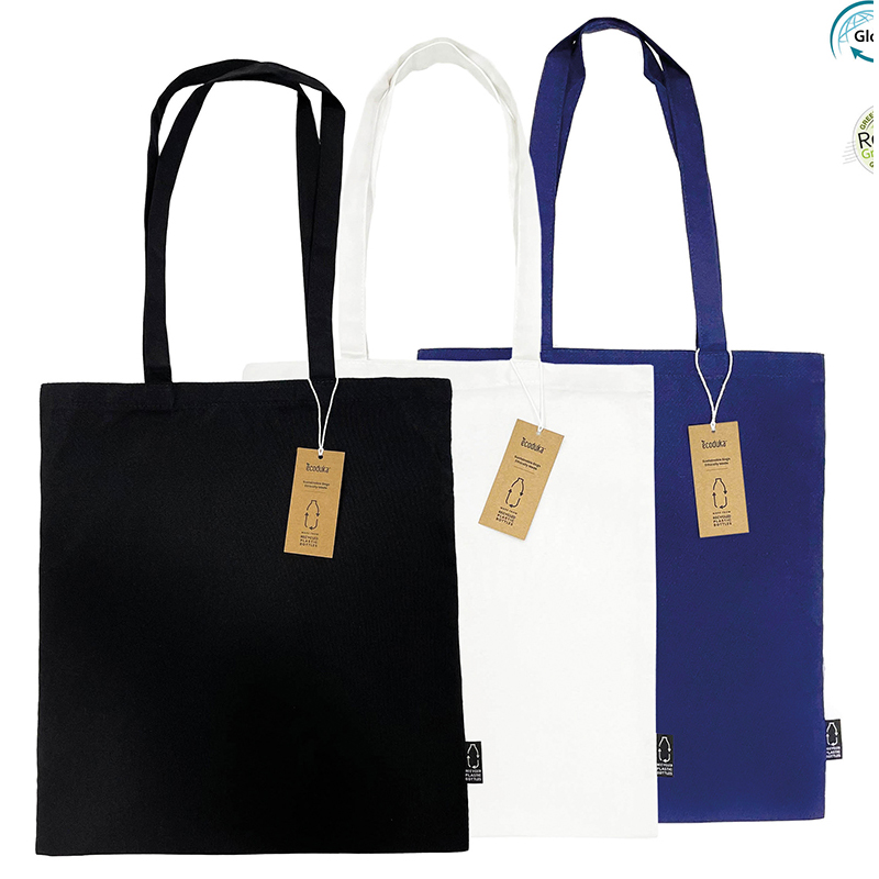 5oz rPET bag with long handle that feels like cotton. GRS certified.