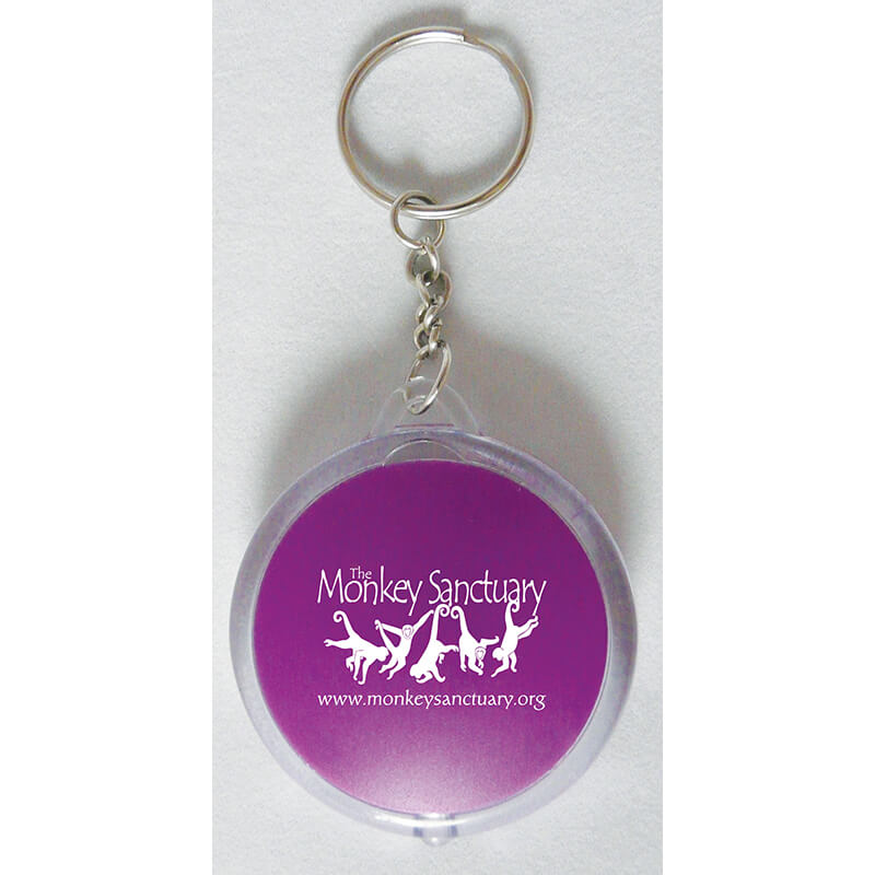 Round torch with push button function in the centre. Comes with batteries and battery protector. Available in a wide range of colours and is printed in one colour on one side.