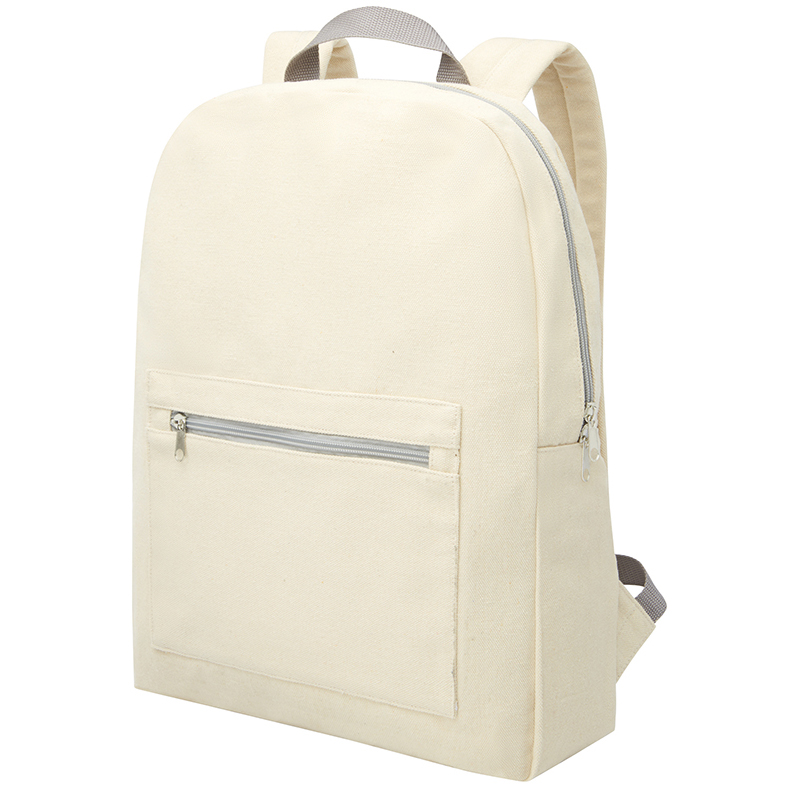 Backpack made of a recycled cotton and polyester blend, with a front zipper pocket and padded shoulder straps. Recycled cotton is manufactured from pre-consumer waste generated by textile factories during the cutting process. Similar colours are blended together so no additional dyeing is required. Due to the nature of recycled cotton, there may be a slight colour variation. This feature distinctly adds to a more authentic appearance. 60% Recycled cotton and 40% Recycled Polyester, 450 g/m2.