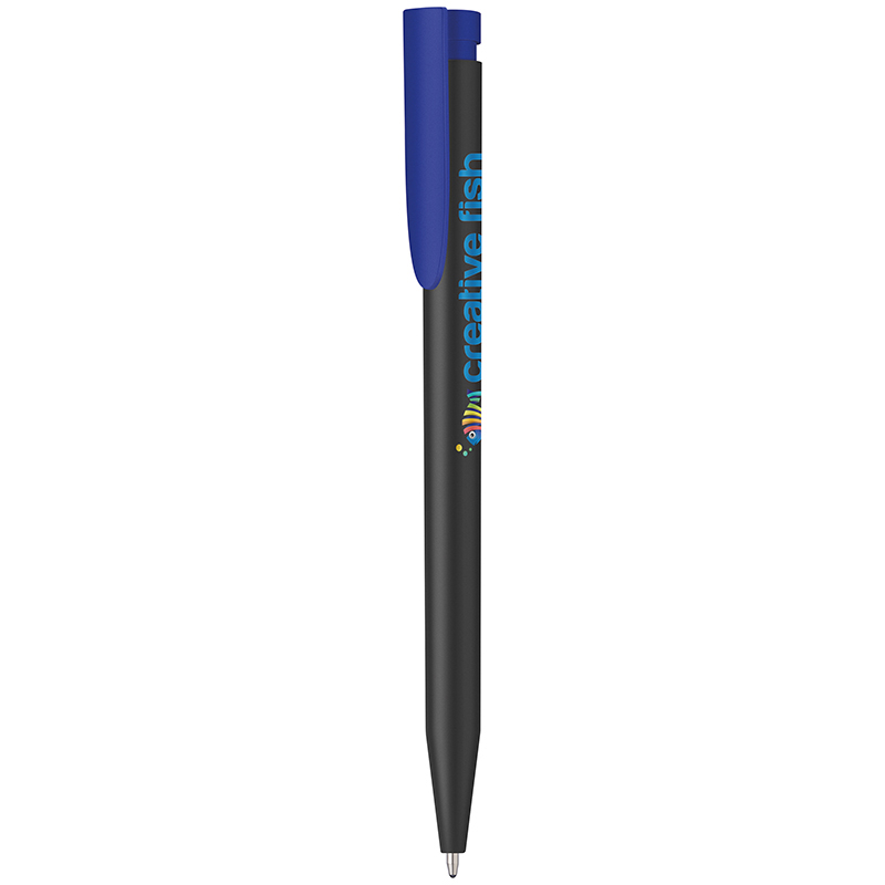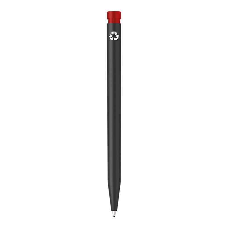 Slimline, push button ballpen with eco-friendly credentials as it is manufactured from recycled plastic from post consumer household equipment. Solid black barrel with a choice of red, blue or black clip.