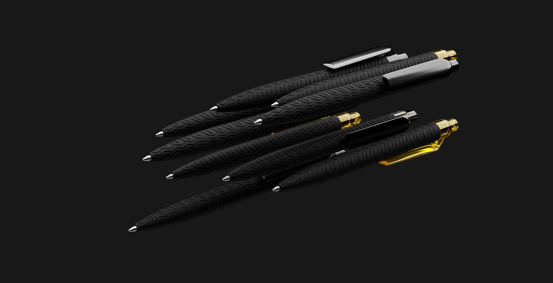 The casing of the new QS03 is structured like a tyre tread. The Soft – Touch version is particularly effective for giving an authentic tyre tread feel. The tyre tread pattern is injection – moulded into the casing and the minimalist clip gives perfect prominence to the logo. An optional metal push button adds an extra automotive feel. Available in matt Black or black Soft Touch and we will mix custom (tread) colours for orders of 5000 units and over. The polished clip can be printed with up to six colours.