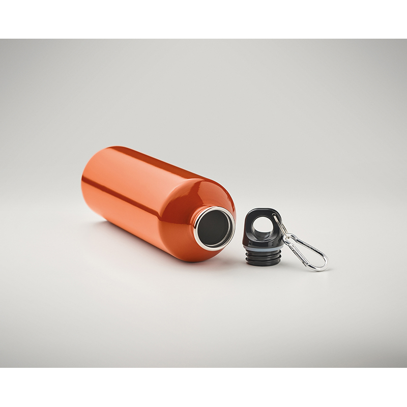 Single wall recycled stainless steel bottle (90% recycled stainless steel and 10% stainless steel) with carabineer. Capacity: 750 ml. The carabineer is not for climbing (non-professional use). Sublimation print available on white item only. Leak free.