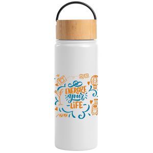 Introducing the Reborn – 530 ml Double Wall Stainless Steel Bottle. This sleek and functional bottle features double-wall vacuum insulation, keeping your hot drinks warm for up to 12 hours and your cold drinks chilled for up to 24 hours. The exterior is crafted from 304 recycled stainless steel with a matte finish, while the interior is also made of 304 recycled stainless steel for optimal temperature retention. The bamboo lid adds a touch of natural elegance, complemented by a handle with a gunmetal finish. With a capacity of 530 ml this bottle is perfect for all your beverage needs. Please note, it is not suitable for dishwashers or microwaves. Ideal for everyday use, whether you’re at home, at the office, or on the go.