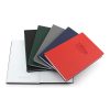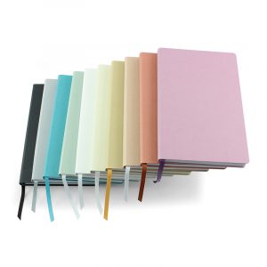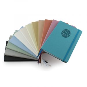 A5 Casebound notebook with an elastic strap to match or contrast. Cover material uses recycled waste from coffee cup production, and pages are recycled lined paper. Made to order in the UK. Includes a deboss to one position, foil block and print also available Please call.