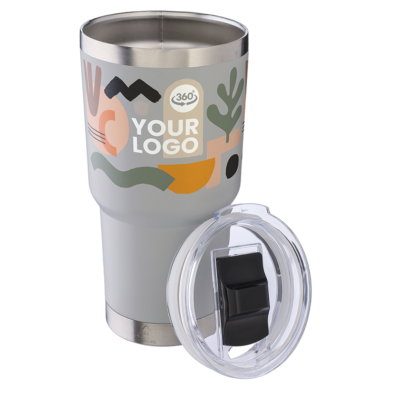 Stainless steel double walled drinking mug with silicone grip. Keeps contents hot for 4 hours and cold for 6 hours.