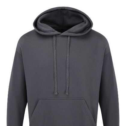 50% cotton, 50% polyester. 260grm weight. One front central pocket.